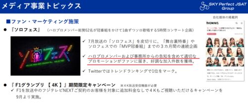 スカパーJSATホールディングスの第1四半期決算説明会において、 ハロプロのことが触れられたそうです。 スカパーといえば、 「こぶしファクトリー ライブ2020 ~The Final Ring!~」 「モーニング娘。秋ツアー 代々木公演」 などを中継しており、自分も加入…